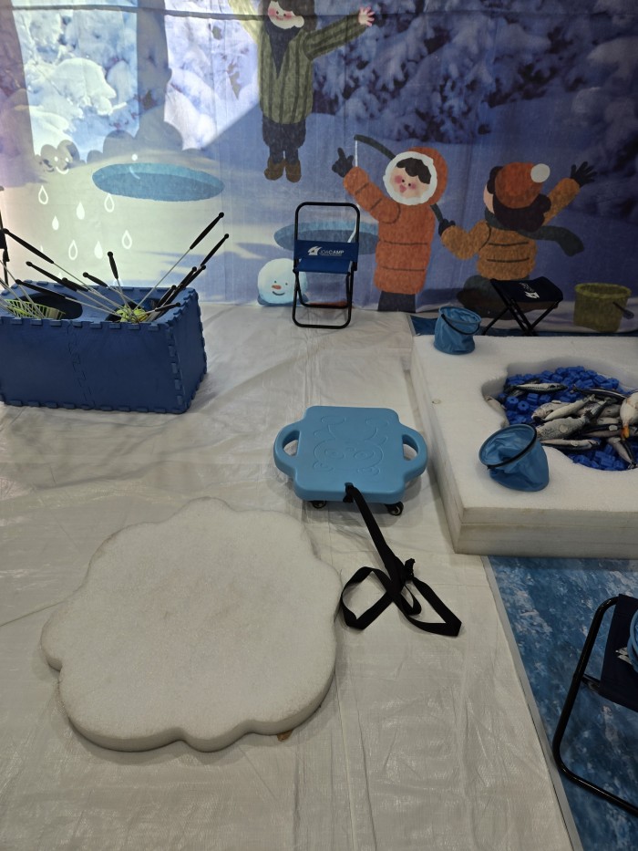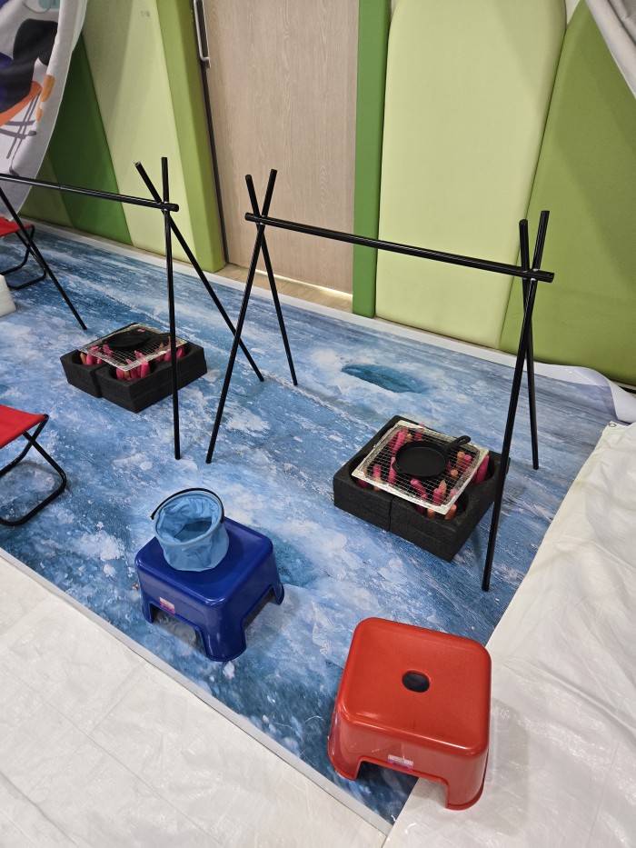 - 빙어 낚시를 해요.(아이들이 막대 휘두르지 않게 조심해 주세요.)