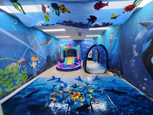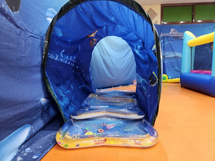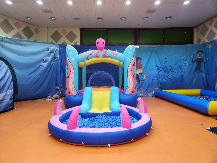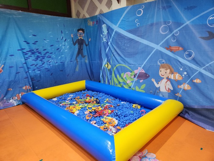 - 풀장에서 물고기들을 잡을 수 있고 나와서 미끄럼틀을 타요.