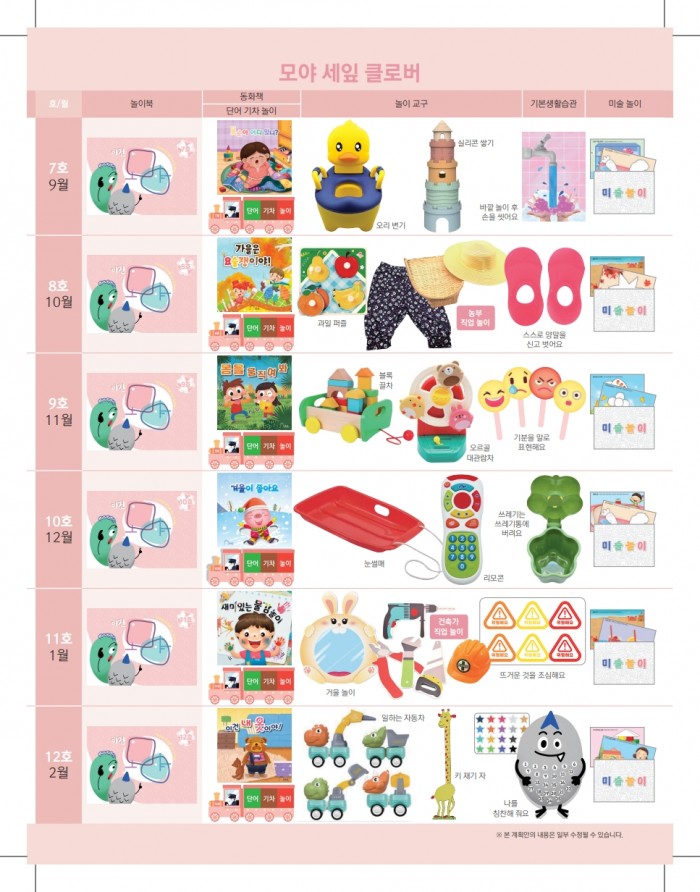 이건모야 작성자크마교육 등록일 25-07-21 조회56회 프로그램 이건모야 연령 만1세/만2세 구성 연간계획표 본문 통합프로그램 이건모야 댓글목록 댓글목록 등록된 댓글이 없습니다. 또래놀이 아토맘 목록
