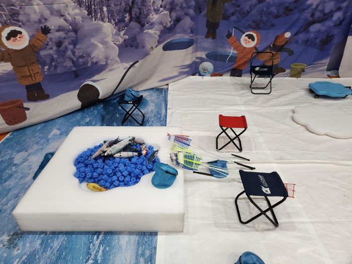 - 빙어 낚시를 해요.(아이들이 막대 휘두르지 않게 조심해 주세요.)