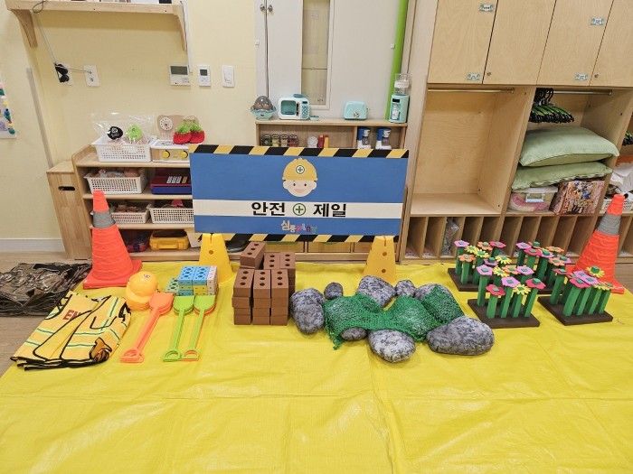 - 장난감 벽돌과 돌로 쌓기 놀이를 해요.