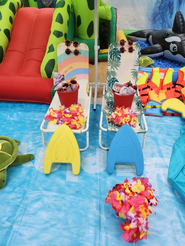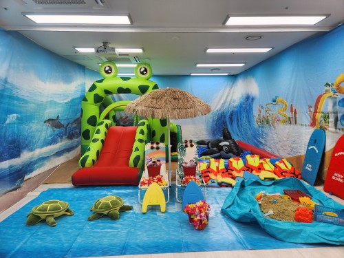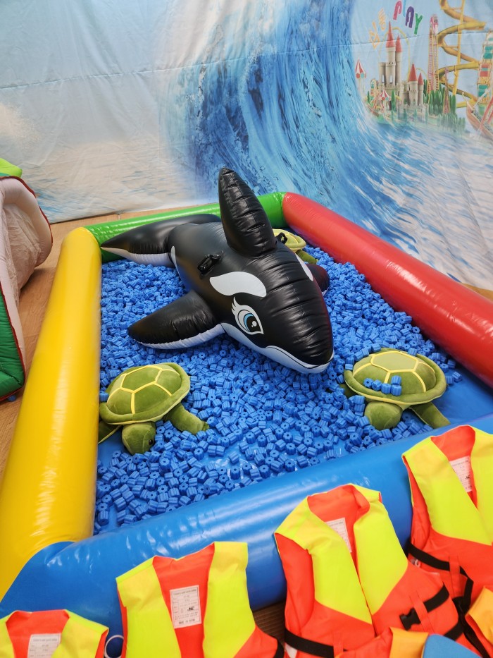- 구명쪼기를 매고 풀장에서 거북이랑 고래랑 놀아요.