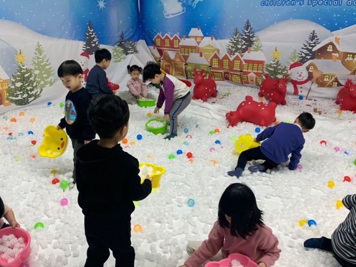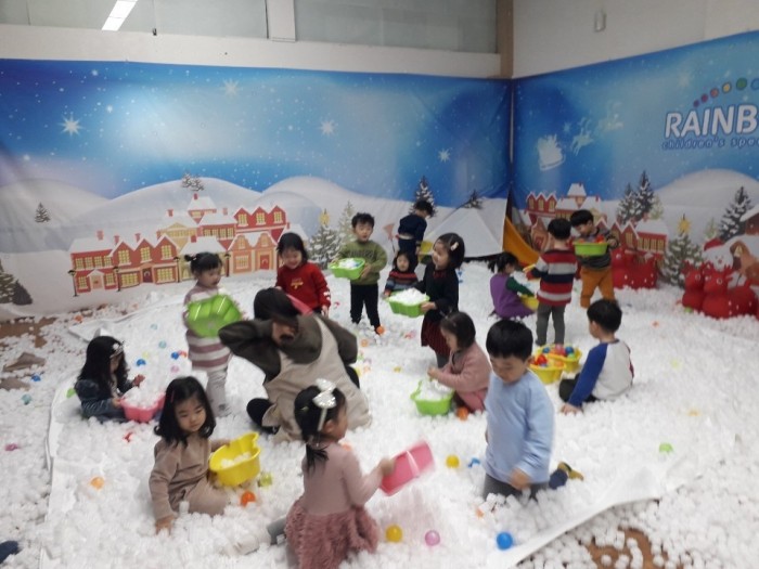 - 아이들은 바가지를 사용하여 놀고 선생님들만 눈삽으로 아이들에게 뿌려주세요.